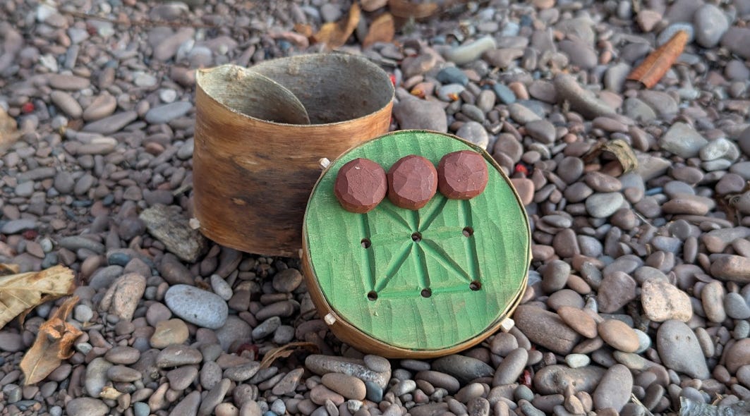🪓 Craft: This is the game of Three Man’s Morris, also known as Nine Holes, and is known to be at least a 4,000-year-old game. As you can see, I was experimenting with making bark canisters with Willow bark rather than Birch bark. I would say I was partially successful, and further research is needed.