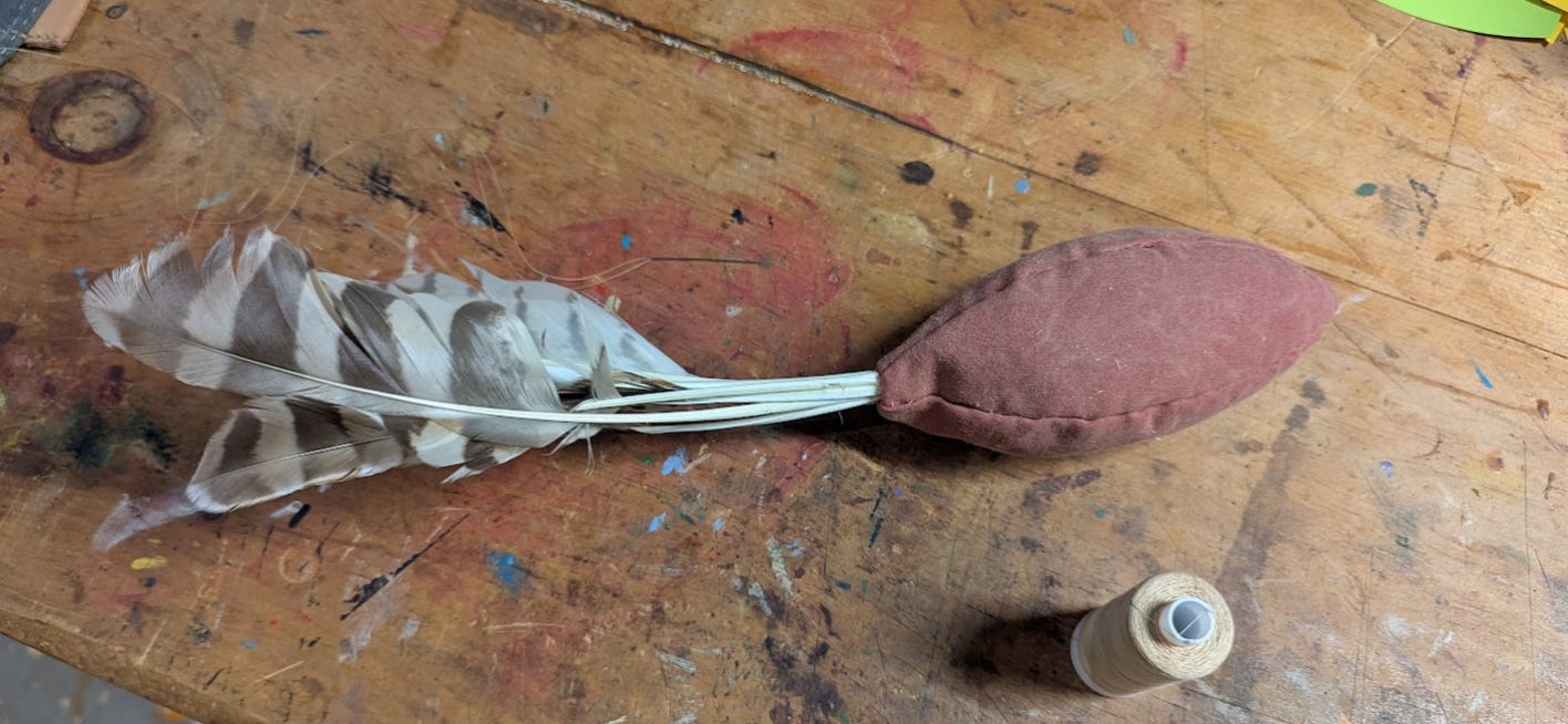 🪓 Craft: This is a waxed canvas throwing football stuffed with Lauren Newby’s sawdust and fletched with a spurt of wild-foraged feathers. The resemblance to a sweet potato was totally accidental.