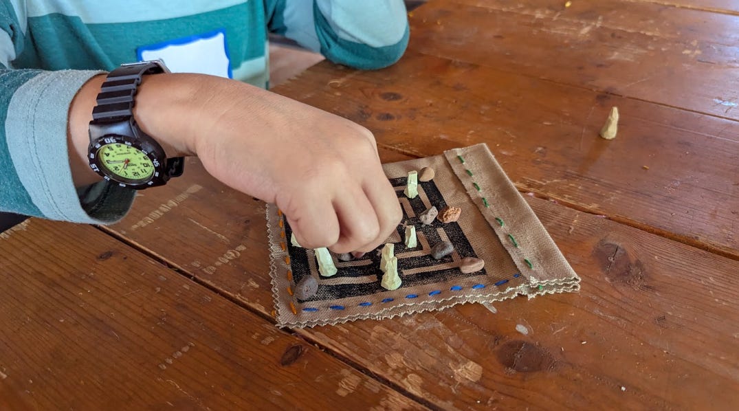 🪓 Craft: During Family Weekend at North House, Anna Sharratt and I taught a kid’s class on making Nine Man’s Morris boards. The students stamped, decorated, and sewed their game boards, carved their game pieces, and made rope drawstrings for their game board bags! It was lots of fun, and the kids created some very wonderful objects.
