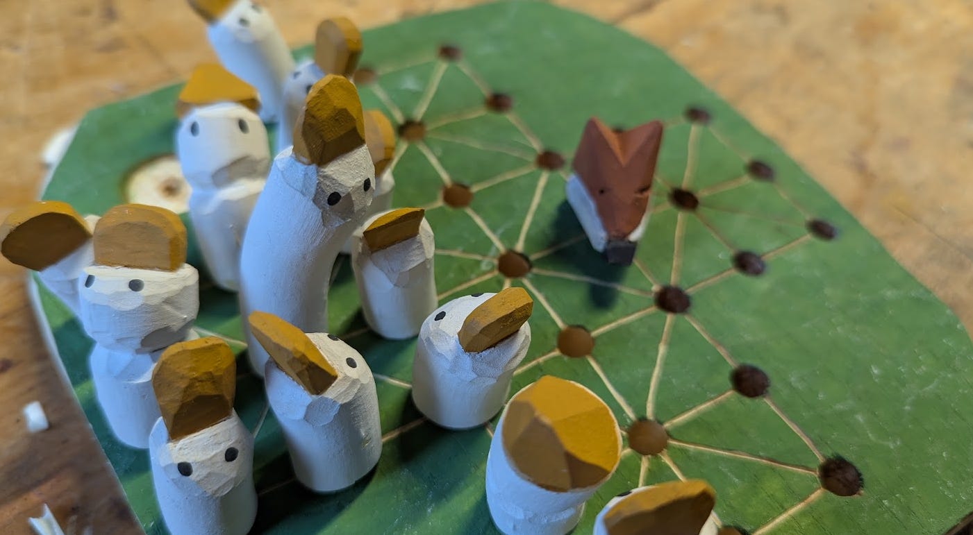 🪓 Craft: This is a venerable old game known as Fox and Geese. In the early American colonies, people would often make this game from old lumber or off-cuts of siding planks. There are more elaborate boards in the world, of course, but I am drawn to this game’s expression as a common folk craft.