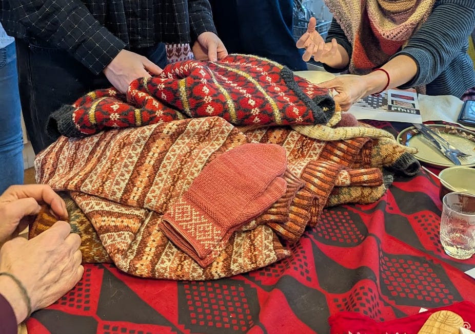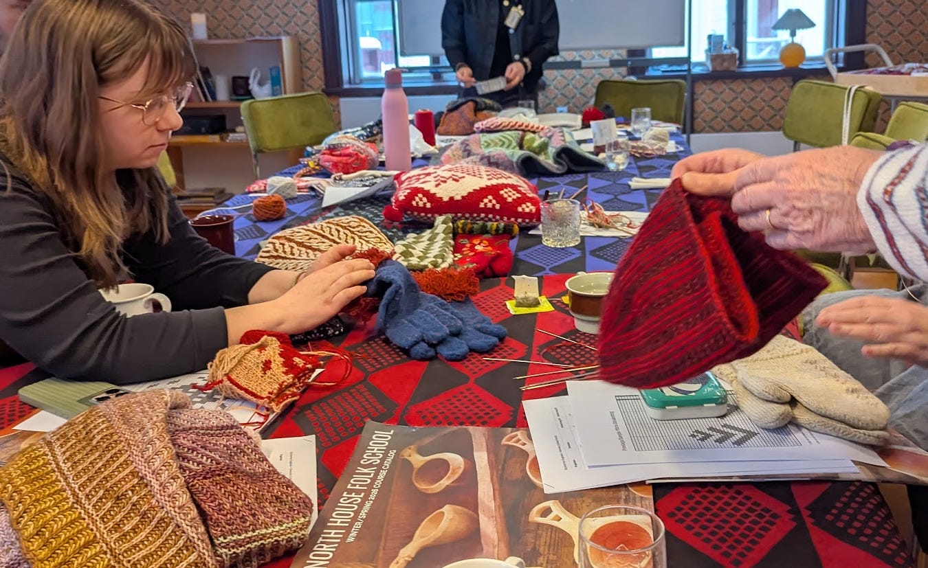 A great joy of our trip was meeting with the craft consultants associated with the Västernorrlands Museum in the city of Härnösand. As you can see, we geeked out about knitting together with a large group of wonderful local fiber freaks. It was a splendid day of slöjd.